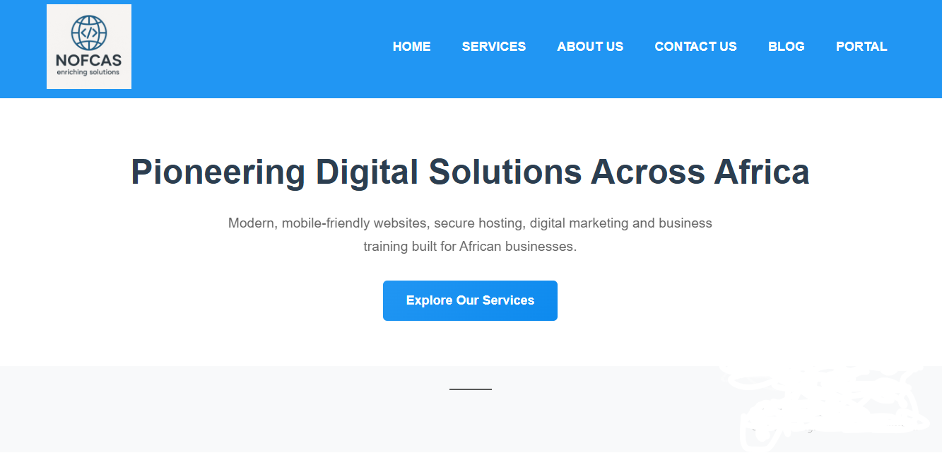 At Nofcas, I build fast, secure, and scalable digital solutions tailored for businesses and institutions across Africa. My work ranges from crafting modern, mobile-first websites and applications to setting up robust hosting infrastructures and integrating AI-powered customer support systems.